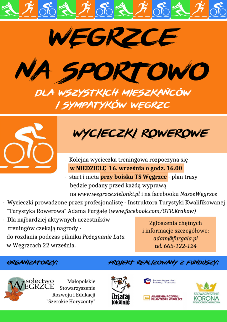 Węgrzce na sportowo – zapraszamy na wycieczkę rowerową w niedzielę 16.09. o 16.00!