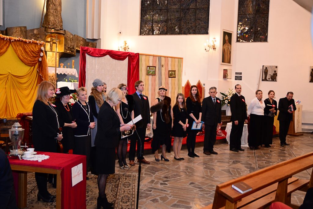 Całość okraszona była muzyką w wykonaniu Chóru parafialnego, pięknym śpiewem solo p. Małgorzaty Plewniak – dyrygent Chóru, a także nastrojowymi melodiami utworów granych na skrzypcach przez p. Joannę Pasek. Aktorzy naszego amatorskiego Zespołu – parafianie węgrzeckiego kościoła, wspólnie z widownią przeżywali w tym spektaklu historię naszej Ojczyzny, która w efekcie doprowadziła do odzyskania przez nią niepodległości.