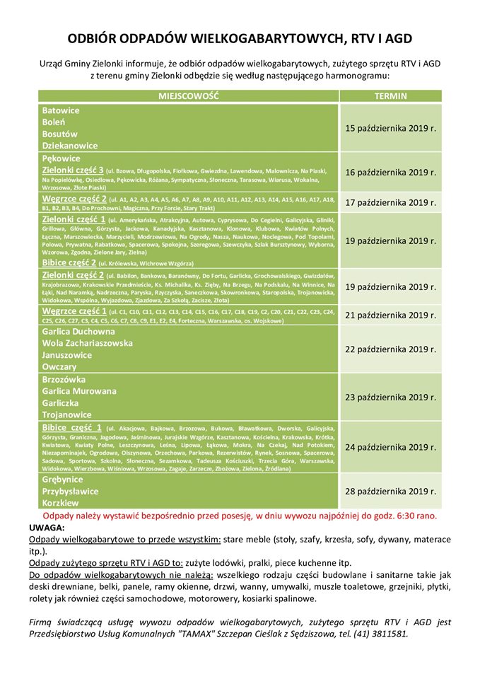 Zaplanowano odbiory odpadów wielkogabarytowych