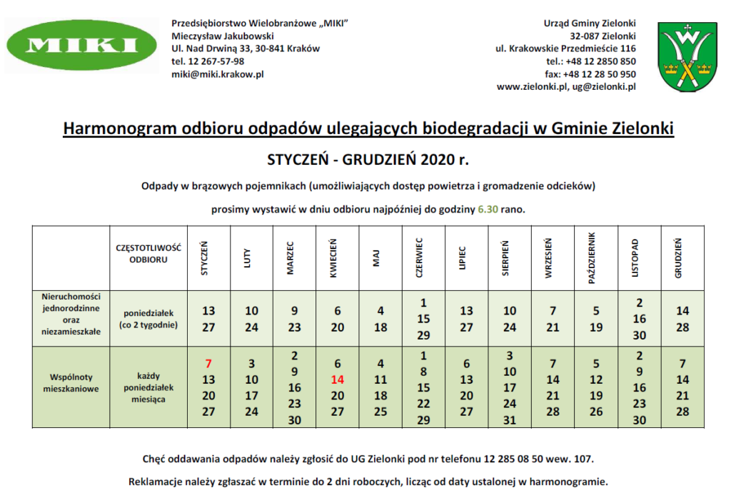 Odbiór odpadów bio sprzed posesji według harmonogramu:
