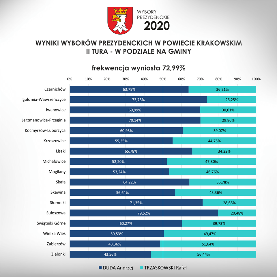 Wyniki II tury wyborów prezydenckich w powiecie krakowskim, gminie Zielonki i lokalnych komisjach