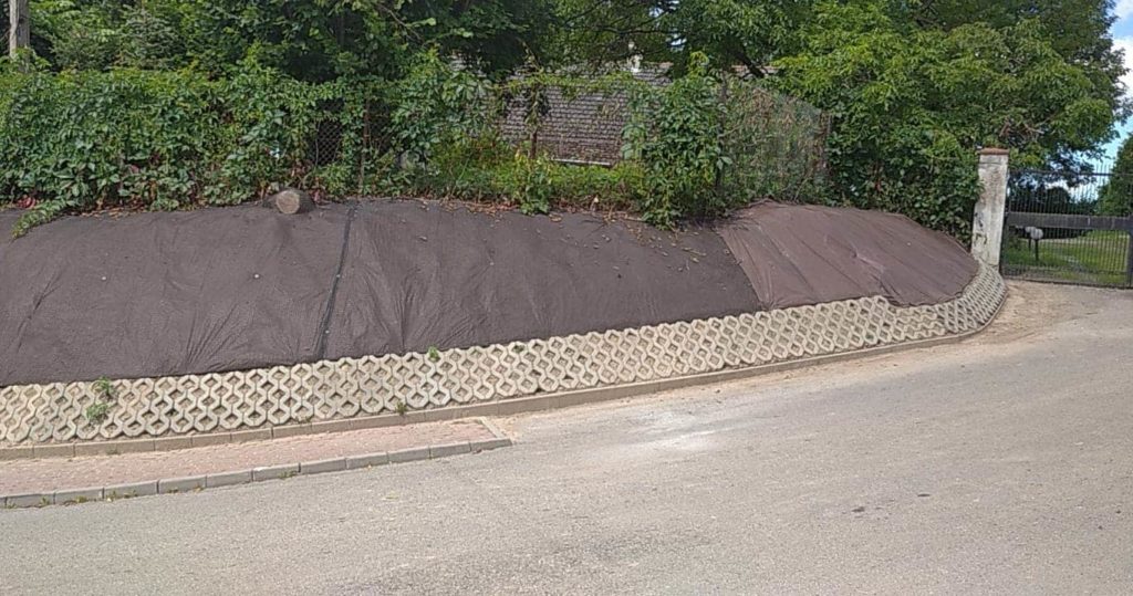 Prace przy zabezpieczeniu skarpy przy ul. A5 i A6 zakończone. Jesienią będziemy jeszcze obsadzać zielenią, która korzeniami wzmocni samą strukturę. Prosimy nie wchodzić na skarpę aby nie poobrywały się zabezpieczenia i siatki.