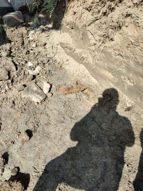 Zamknięty odcinek ul. A10. W czasie korytowania pod wymianę podbudowy drogi powiatowej znaleziono pocisk. Teren zabezpieczony przez policję w oczekiwaniu na saperów.