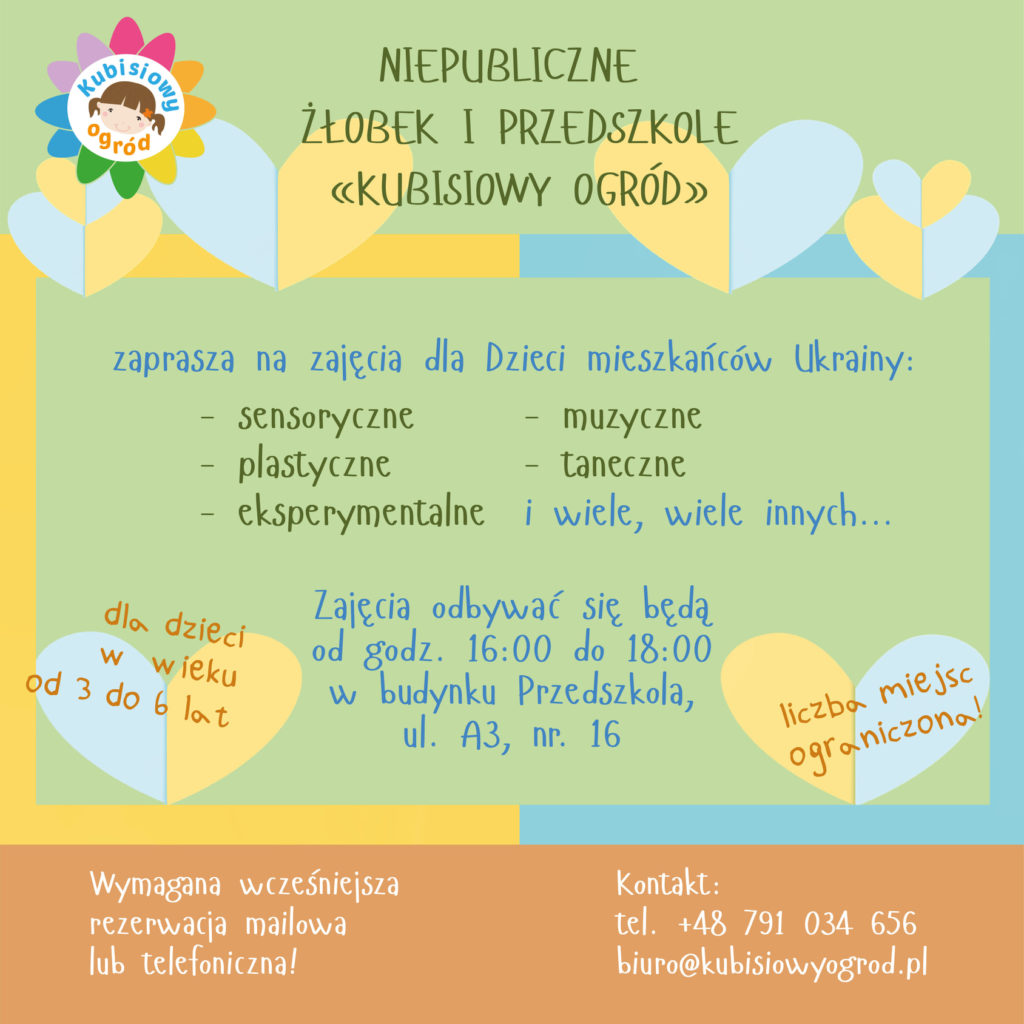 Zapraszamy dzieci z Ukrainy w wieku od 3 do 6 lat