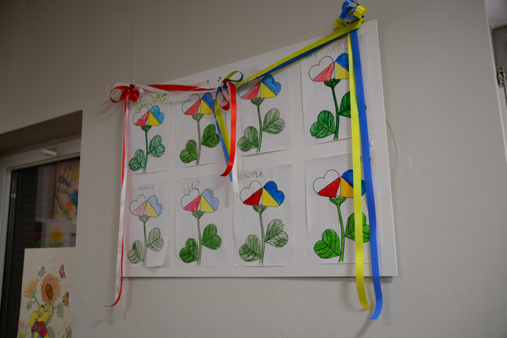 Ściany naszej placówki ozdobiły prace powstałe specjalnie na to spotkanie – dzieci ze Szkoły Podstawowej w Bibicach przygotowały kolorową wystawę pt. „Kwiaty dla kobiety”, a maluchy z Przedszkola Samorządowego w Węgrzcach z siedzibą w Bibicach pod opieką Joanny Pasek stworzyły prace chwytające za serce w relacjach polsko-ukraińskich.