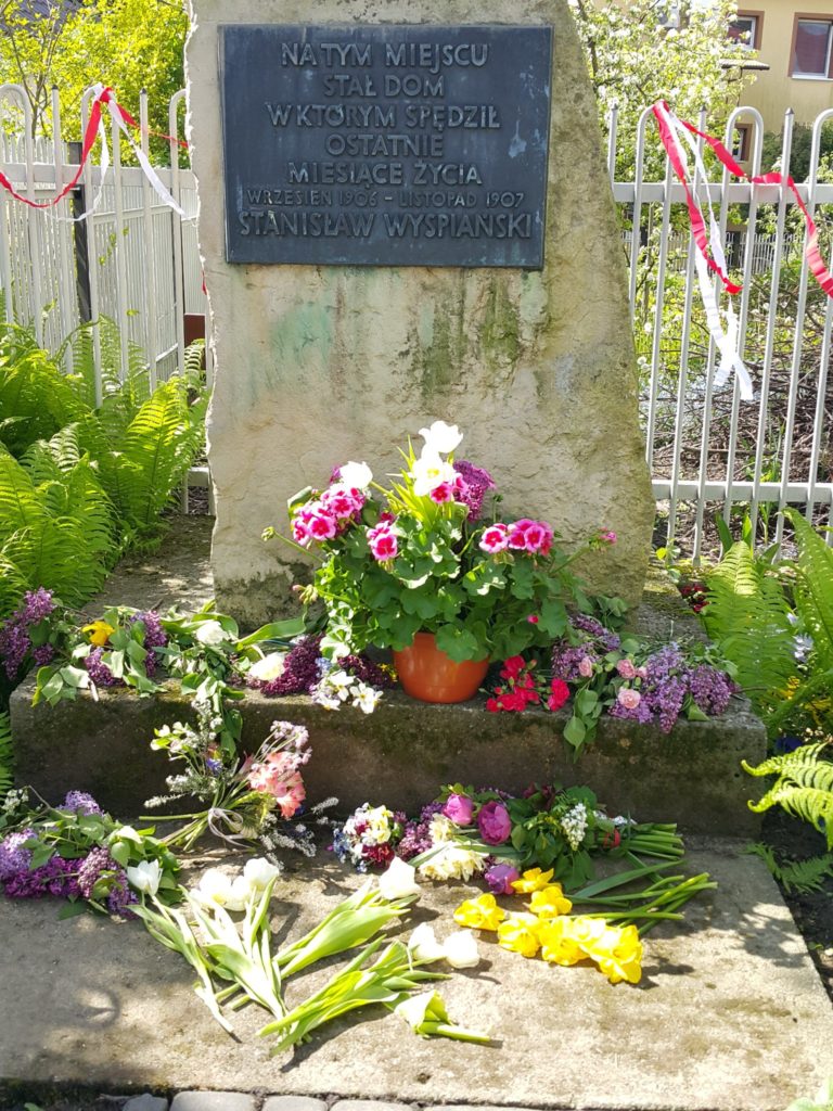 Najważniejszy punkt programu stanowiło złożenie wiązanek kwiatów pod pamiątkową tablicą odsłoniętą w 1969 r., gdy społeczność Węgrzc obchodziła stulecie urodzin Wyspiańskiego. Oprócz sołectwa o artyście pamiętały tradycyjnie dzieci i młodzież – jak to się przyjęło w zwyczaju osobę młodopolskiego twórcy uhonorowano i bukietami różnokolorowych wiosennych kwiatów.