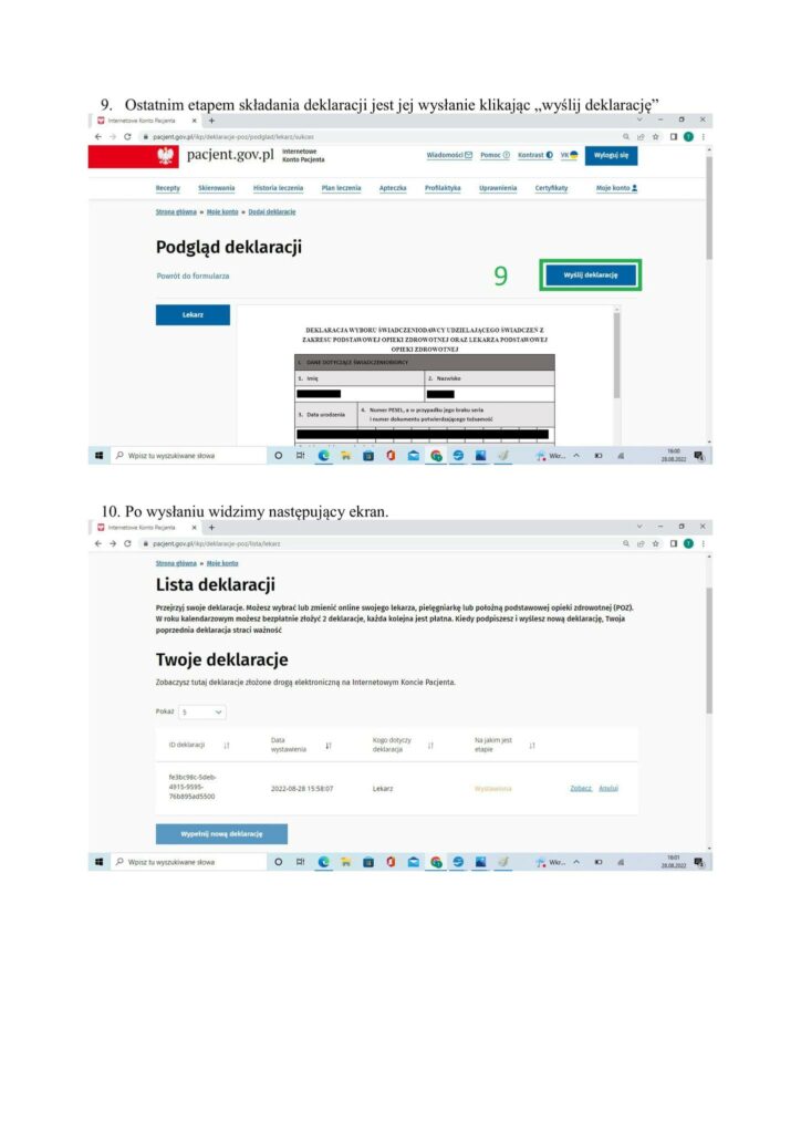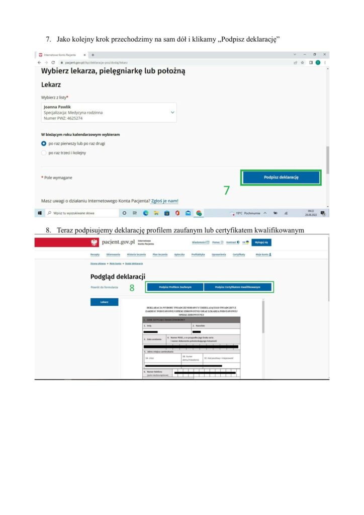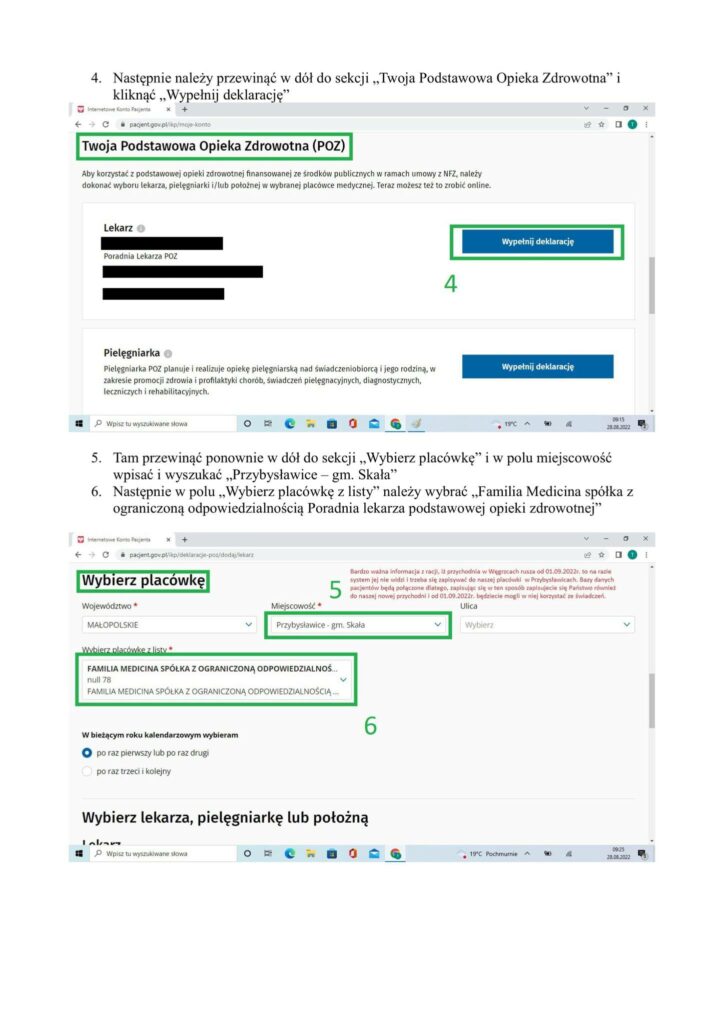 Uwaga ważne: z racji, iż Przychodnia w Węgrzcach rozpoczyna swoją działalność od 01.09.2022r. w tym momencie system jeszcze jej „nie widzi”. Dlatego też, przez najbliższych kilka dni deklaracje będziecie Państwo wypełniać do naszej placówki w Przybysławicach.