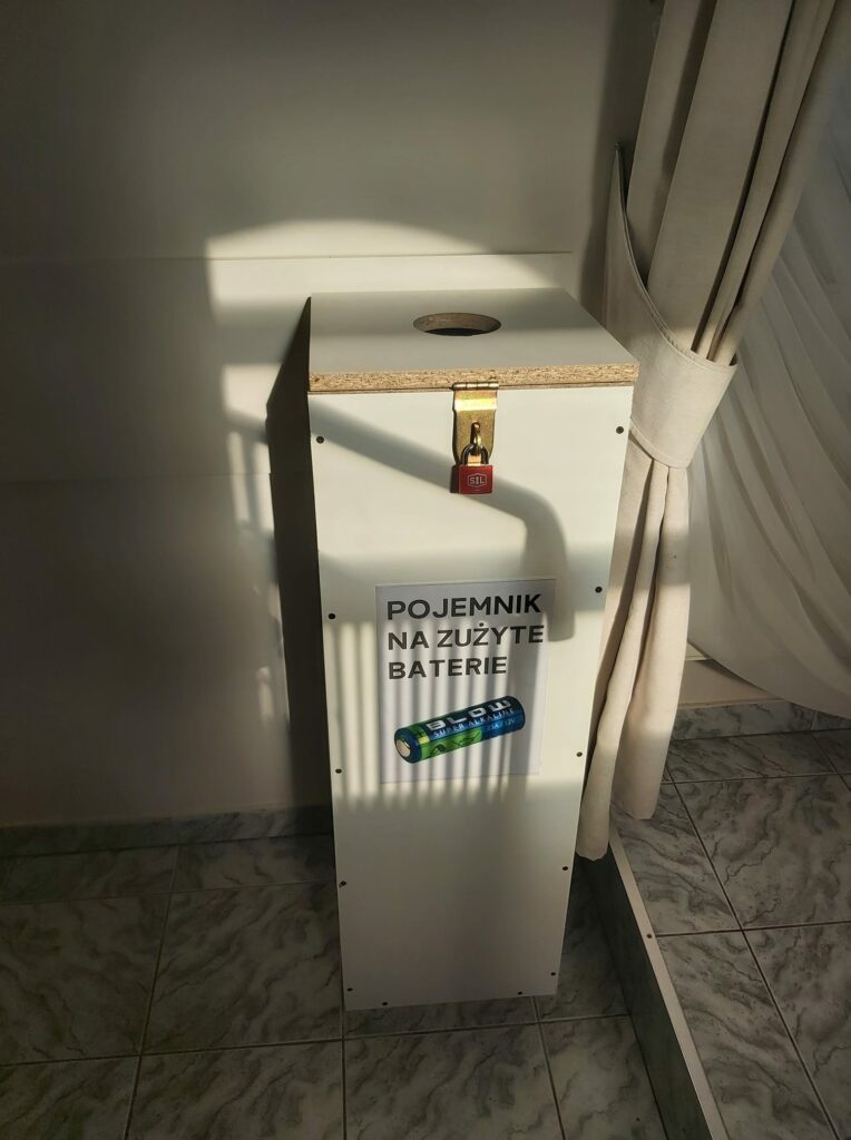Pojemnik na zużyte baterie w bibliotece w Węgrzcach