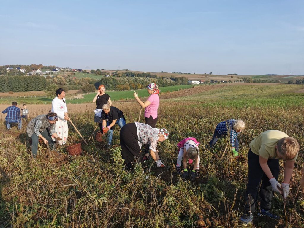 Słońce, dużo rąk chętnych do pracy i fantastyczna atmosfera – tak wyglądały nasze pierwsze wykopki w tradycyjnym stylu: z kopaczkami, chustkami na głowie, z koszami na ziemniaki![]()