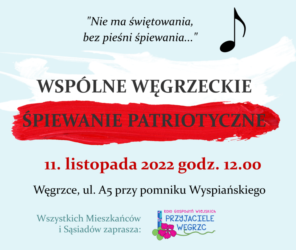 11. listopada wspólne węgrzeckie śpiewanie patriotyczne