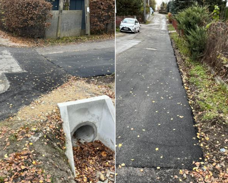 Mamy teraz pod jezdnią nowy odcinek rury, zrobiony naczółek i położony fragment asfaltu. „Przy okazji” został wykonany fragment asfaltu na fragmencie dość wyeksploatowanej jezdni.
