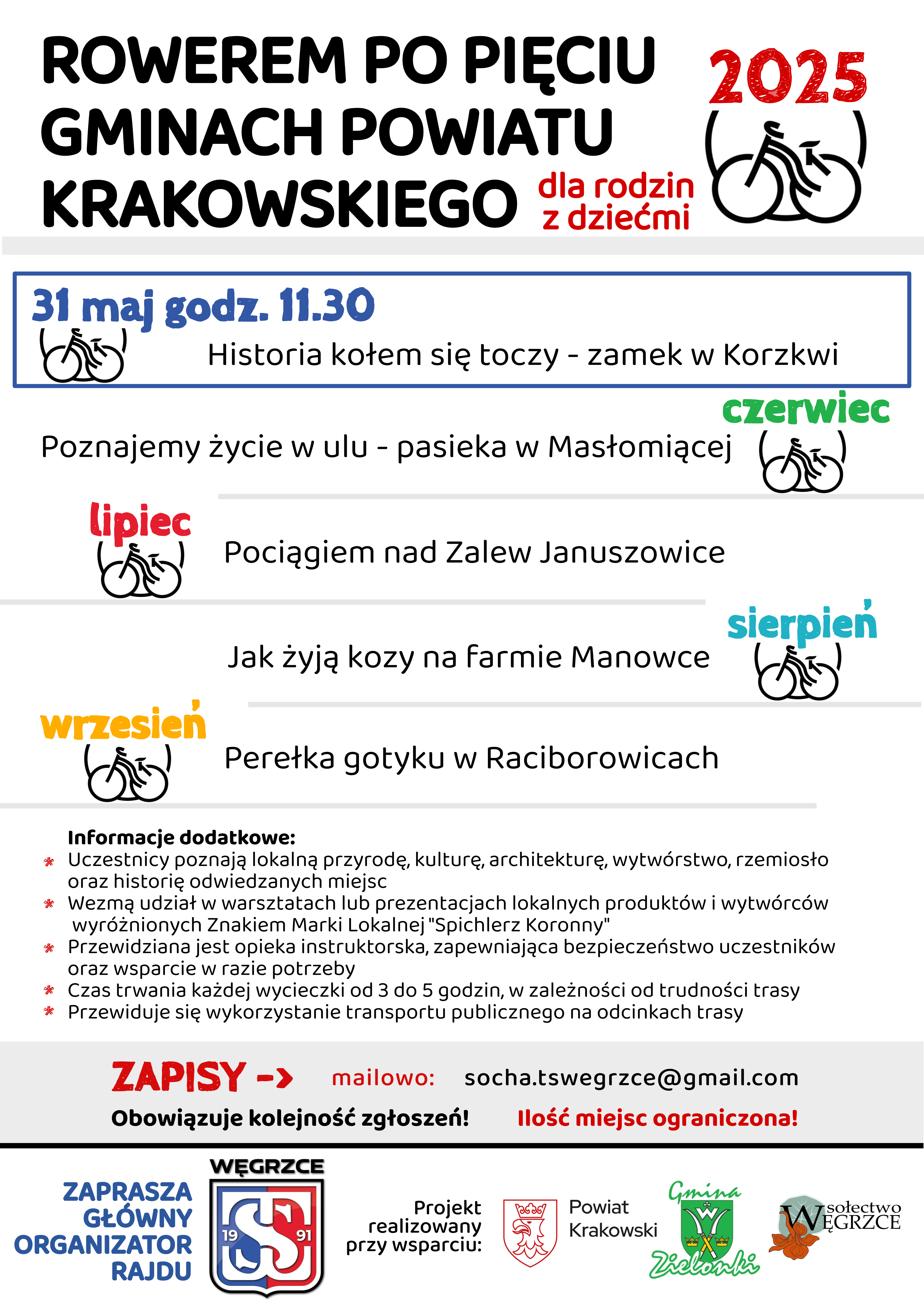 Cały cykl wycieczek rowerowych będzie polegał na zbieraniu pieczątek na karcie uczestnictwa. O kolejnych terminach wycieczek w każdym kolejnym miesiącu będziemy informować przez fb Nasze Węgrzce. ![]()