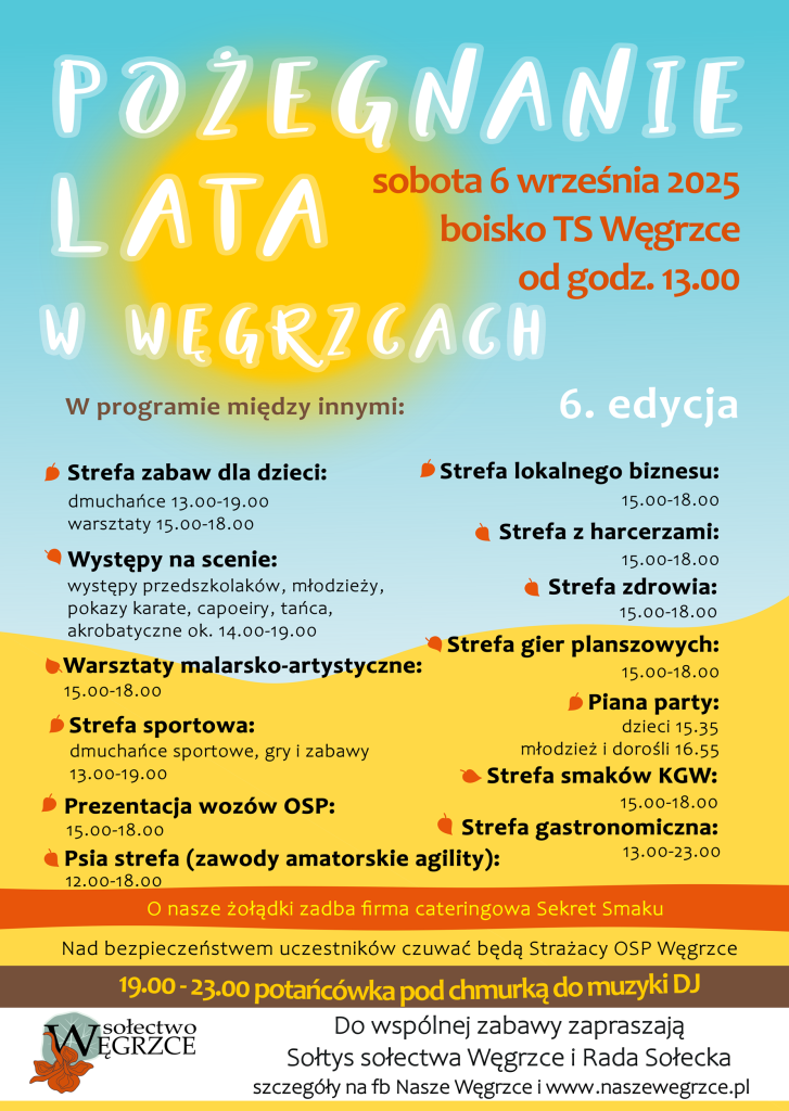 Z ogromną radością zapraszamy na wyjątkowe wydarzenie, które już po raz szósty zgromadzi nas wszystkich w radosnej, piknikowej atmosferze – Piknik Pożegnanie Lata w Węgrzcach!