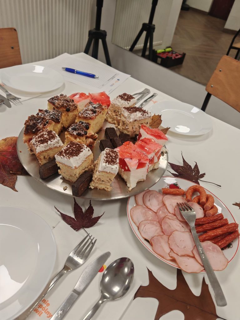 Na stołach czekał na wszystkich pyszny poczęstunek – aromatyczna zupa gulaszowa, kolorowe sałatki, wędliny i oczywiście domowe ciasta, które znikały w mgnieniu oka 🍲🍰oraz nasz przysmak – ajwar, według sekretnego przepisu naszej koleżanki 🍅🌶