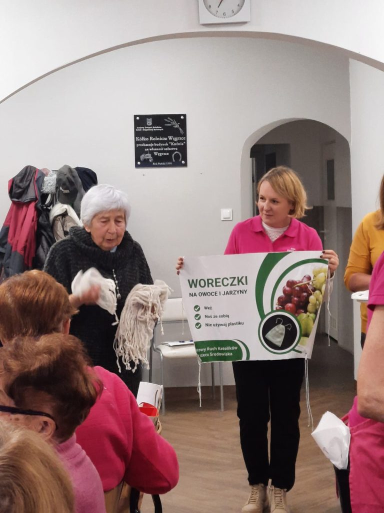 Jedna z naszych Seniorek zachęcała do szycia woreczków z firanek, by ograniczyć zużycie plastiku ♻️ – cudowny przykład troski o planetę! Może znajdą się chętni do kontynuowania tej idei? 😏