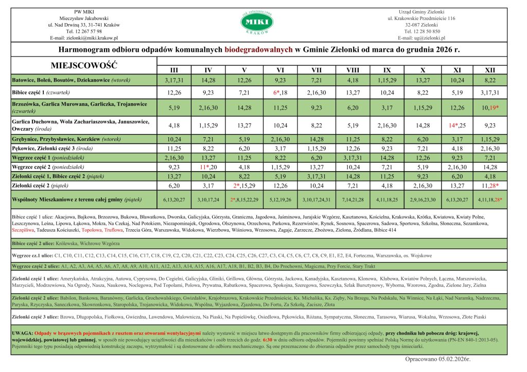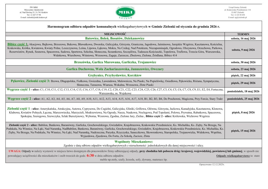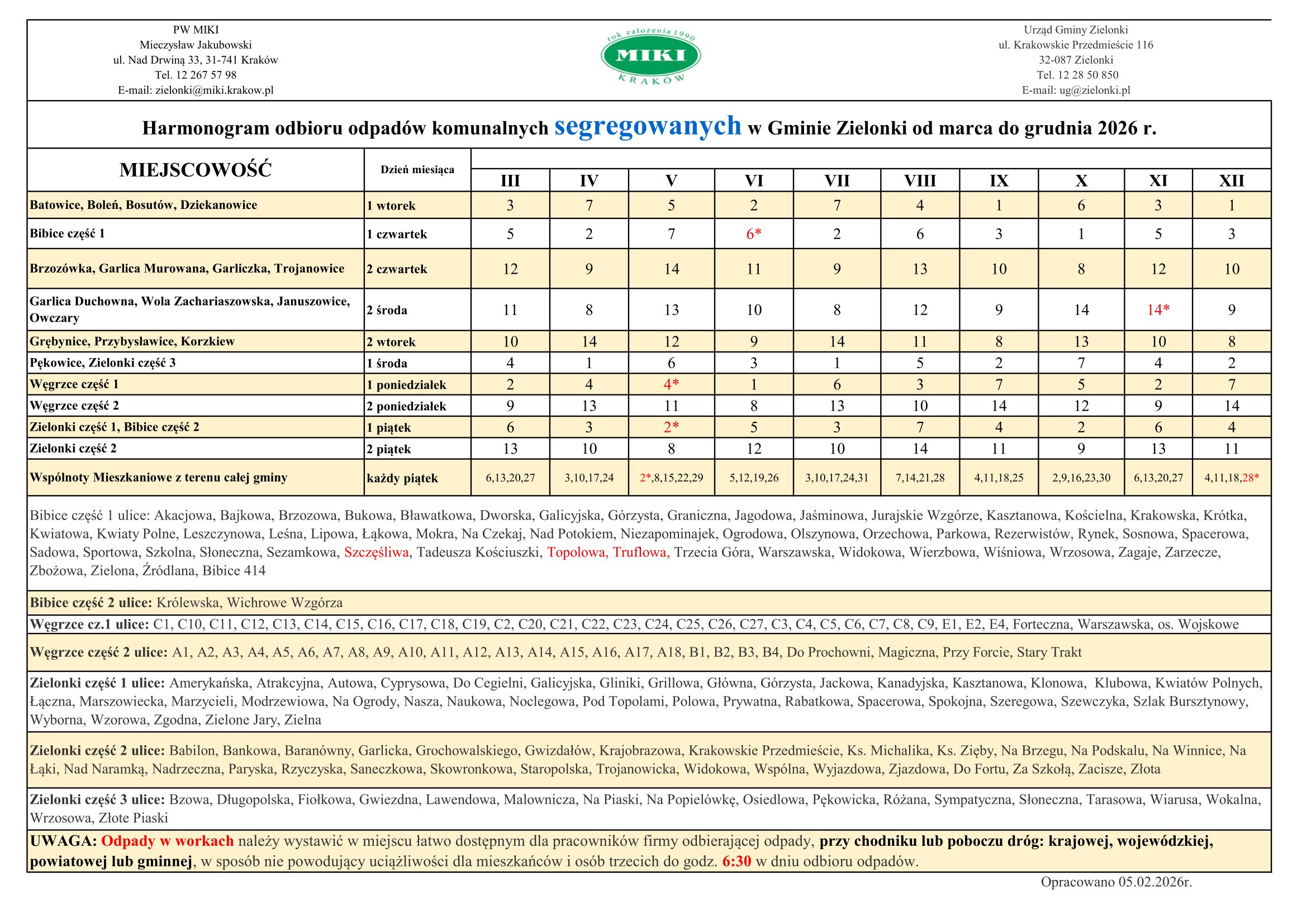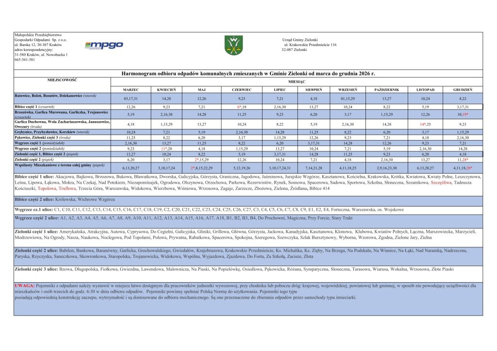 HARMONOGRAM ODPADÓW HARMONOGRAM ODPADÓW KOMUNALNYCH ZMIESZANYCH HARMONOGRAM ODPADÓW KOMUNALNYCH BIODEGRADOWALNYCH HARMONOGRAM ODPADÓW KOMUNALNYCH WIELKOGABARYTOWYCH HARMONOGRAM ODPADÓW KOMUNALNYCH SEGREGOWANYCH