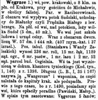 O historii miejscowości Węgrzce można poczytać na stronie „Słownika geograficznego Królestwa Polskiego i innych krajów słowiańskich”: